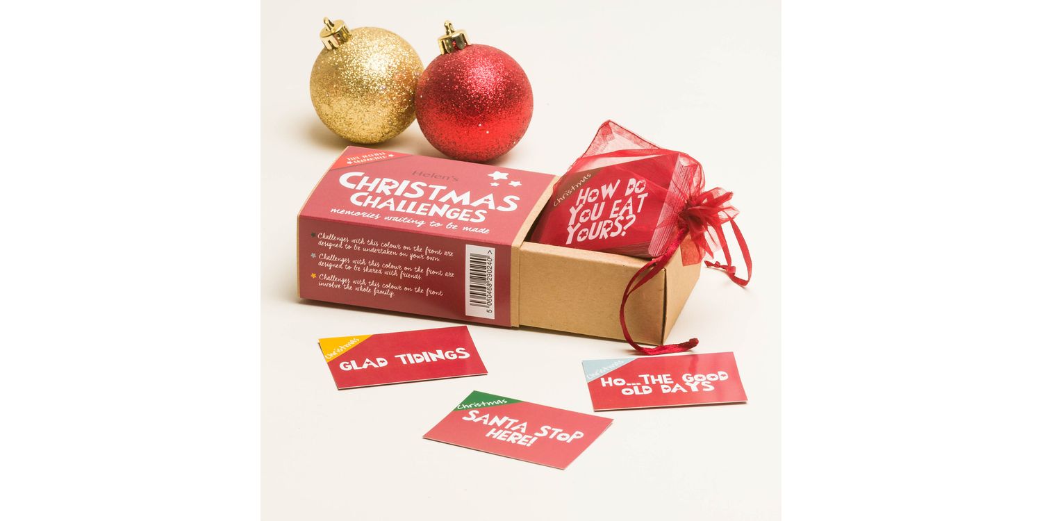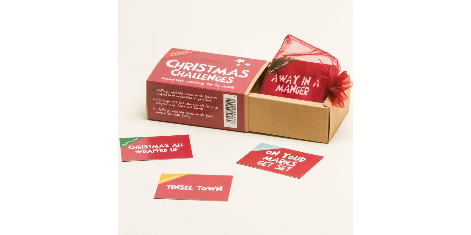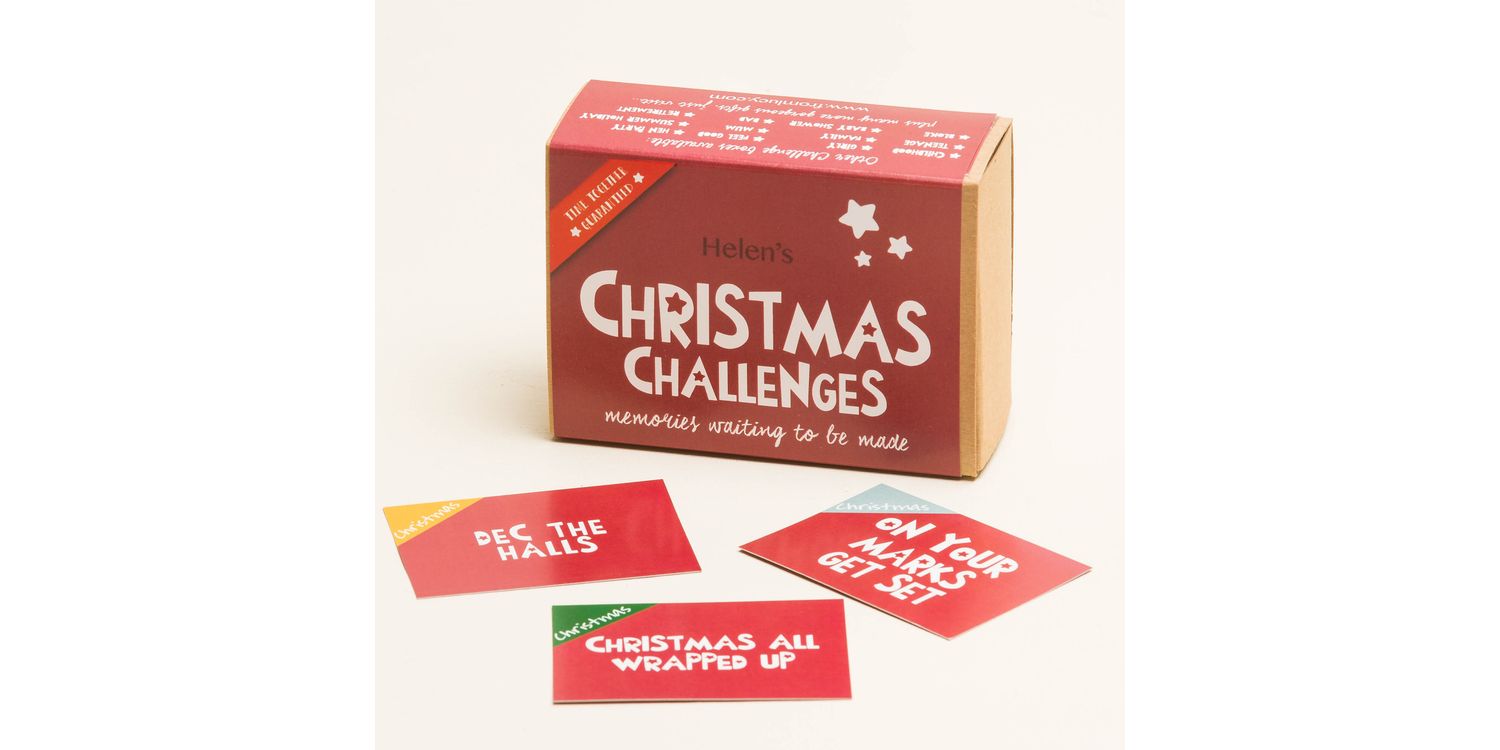 Contained in a bespoke box designed by artist Lucy Tapper, which can be personalised with the name of the recipient by adding a name above the title 'Christmas Challenges'. This would then read for eg: The Smiths' Christmas Challenges, Freddie's Christmas Challenges, or Wilson Christmas Challenges) to make it a unique and unforgettable gift.