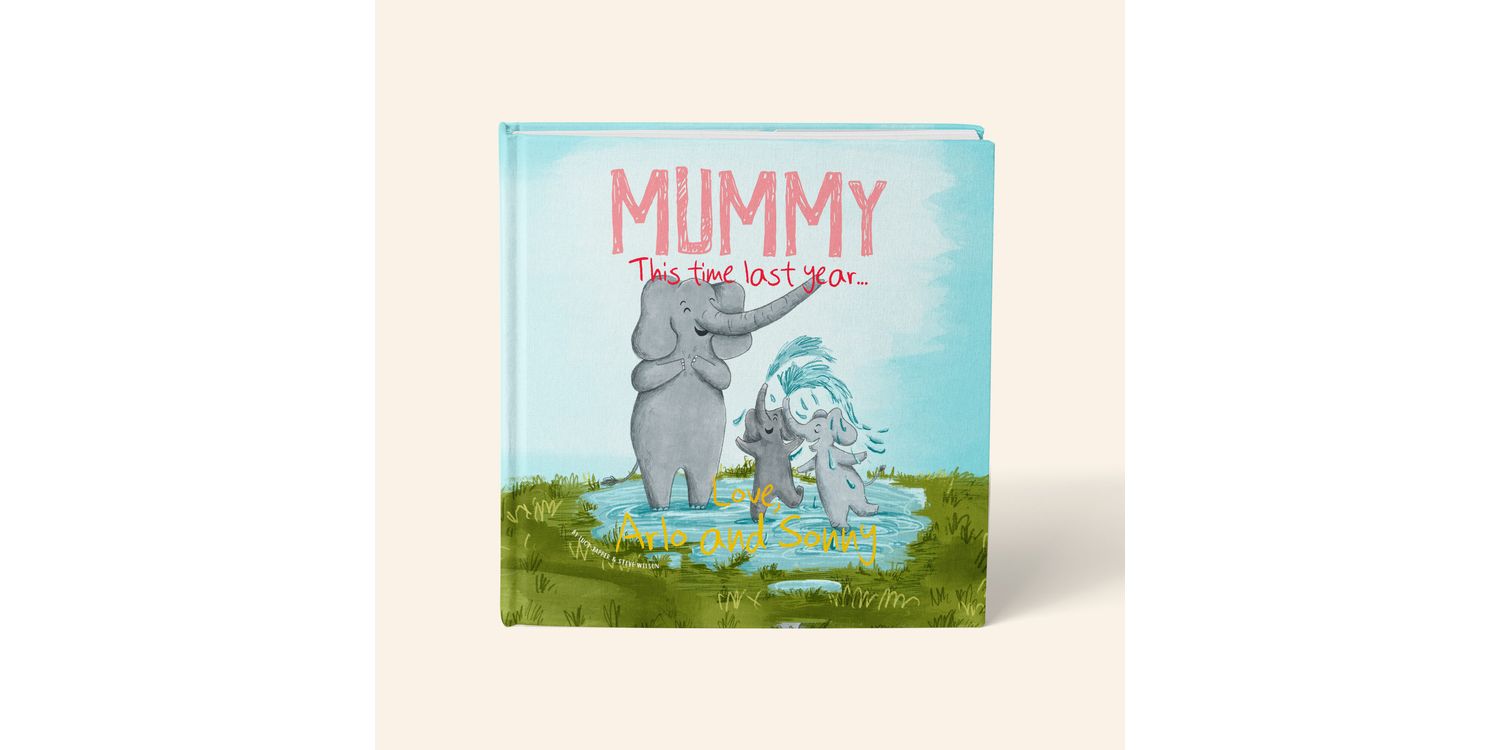 The words: [Mummy] This is a book about the time we've spent together and all of the amazing things we've learned along the way! [Emily & Oliver] / [Mummy], this time last year it was just you and [Daddy] / Our story was about to begin... / This time last year, we hadn't heard your voice. / We hadn't felt your arms around me, or your kisses on our faces. / This time last year we didn't know what sunshine would feel like on our skin... or what the birds would sound like when they sing. / We didn't know about the quiet of the nights. or the buzz of the days. / This time last year we didn't know what it was like to be loved. / [Mummy], this time last year you didn't know what it would feel like to be a mother... / You hadn't learned about the strengths you never knew you had. / You didn't know about the things you'd give up... or the things you'd gain. / You didn't know how it would feel to have a tiny piece of your heart in your arms. / You didn't know about the joys of our firsts and the dreams of our nexts. / You didn't know what it was like... to live for someone else. / This time last year, neither of us knew about true love at first sight... until the moment we first met, on the day we were born, [16th February 2023]. Happy first Mother's Day. Love, [Emily & Oliver].