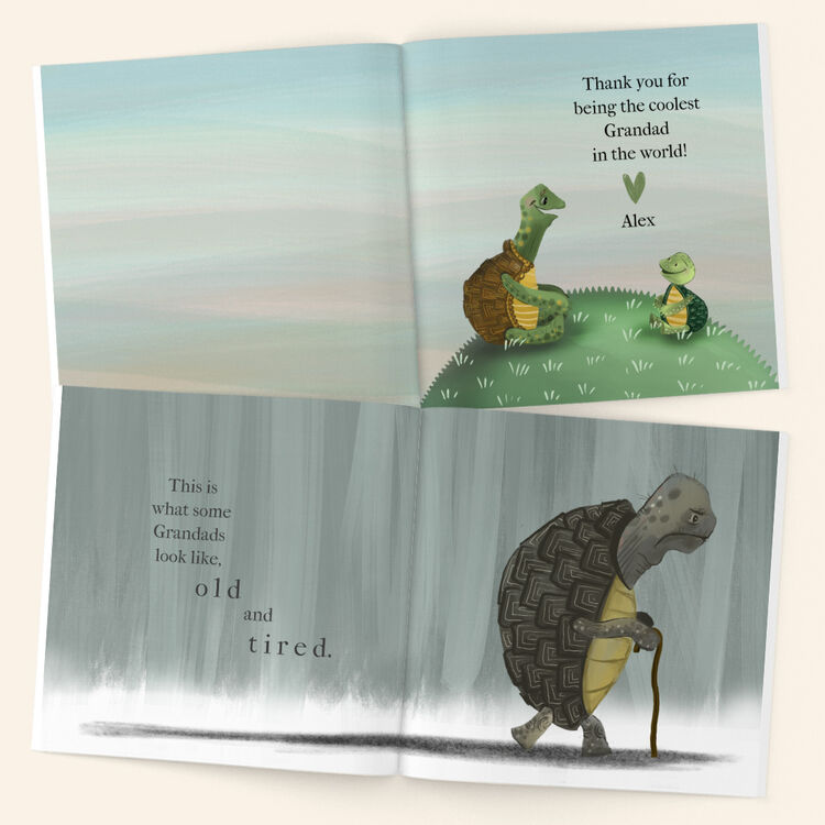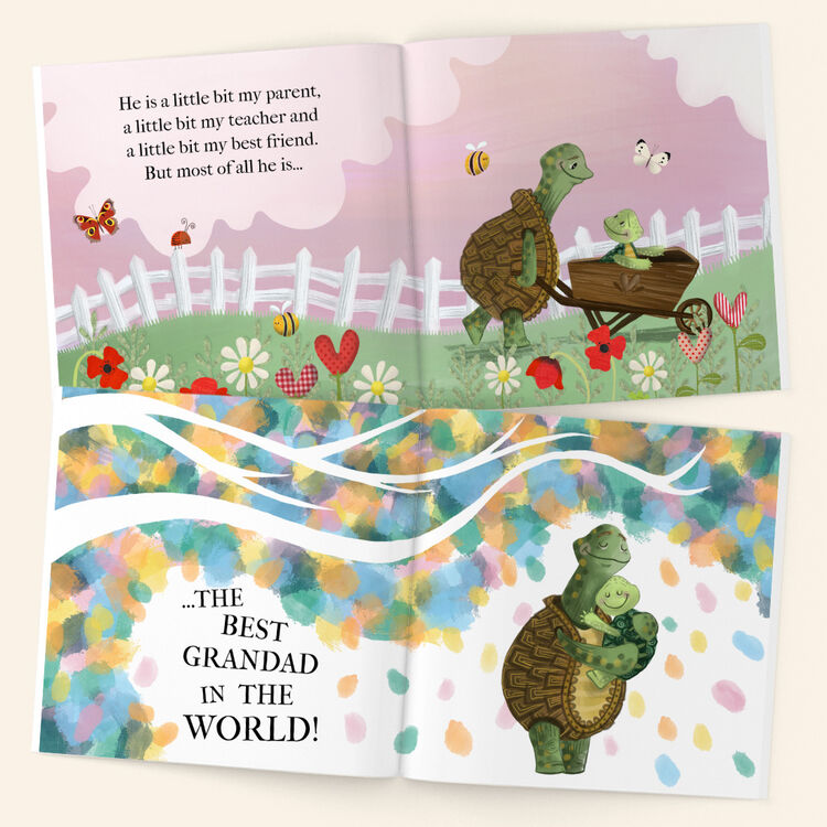 Personalise with what you call Grandad (e.g. Grandpa, Grampy, Pops), the childs name and a few things about Grandad such as what he loves (e.g. rock music or his shed!) and what you like to do together (e.g. going to the park or playing cards).
