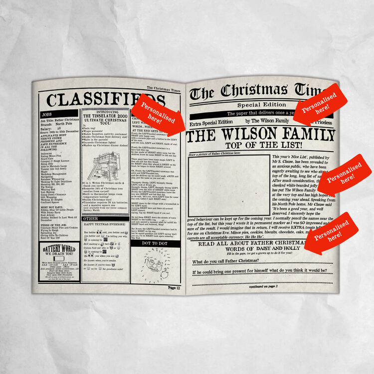 This incredible newspaper also includes a personalised article about why the whole family has been voted top of the 'Nice List' this Christmas!