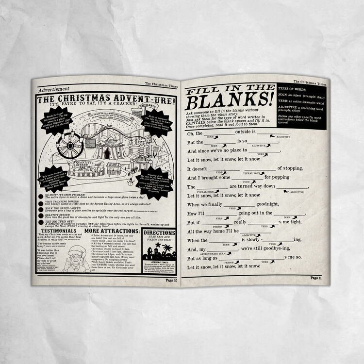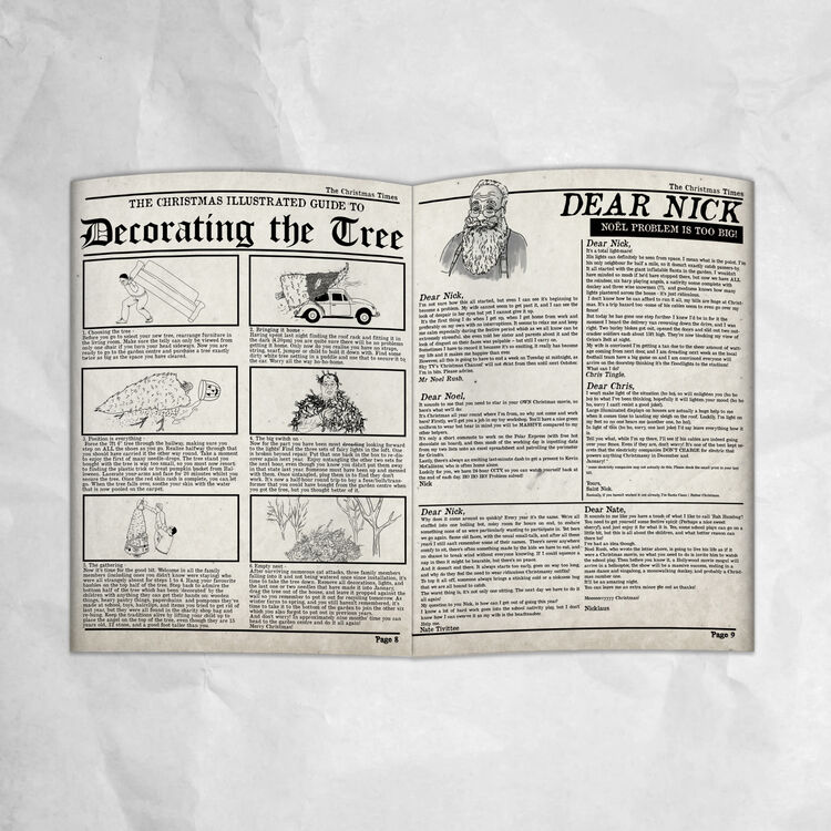The newspaper is also filled with hilarious tongue-in-cheek spoof articles to make the grown-ups giggle, including a 'Step By Step Guide To Decorating The Tree', an incredible problem page with 'Dear Nick' ('Noel problem is too big'), an advertisement for a special Christmas Fayre filled with stereo-typical yuletide related things, and a classifieds page which includes a Father Christmas job description, and silly Christmas products for sale.