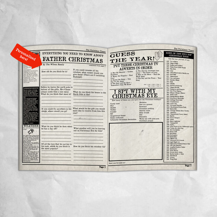 'The Christmas Times'. A wonderful personalised newspaper to be filled with words and drawings from the entire family at Christmas time!